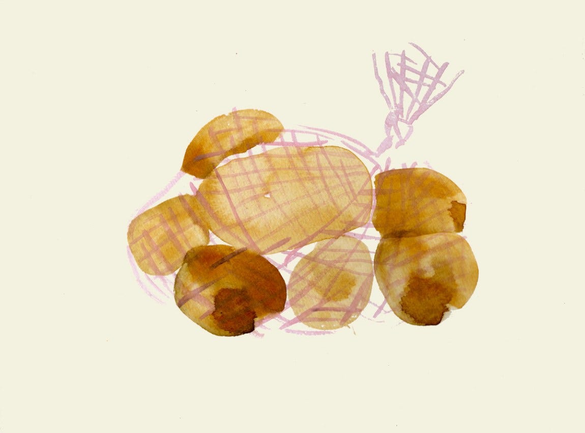 Gift Suggestion No. 8: A sack of potatoes, a pot of paint, a brush, and a cookie cutter. Make some potato-printed thank you cards or wrapping paper. Easy for all ages.