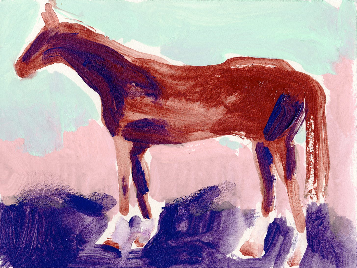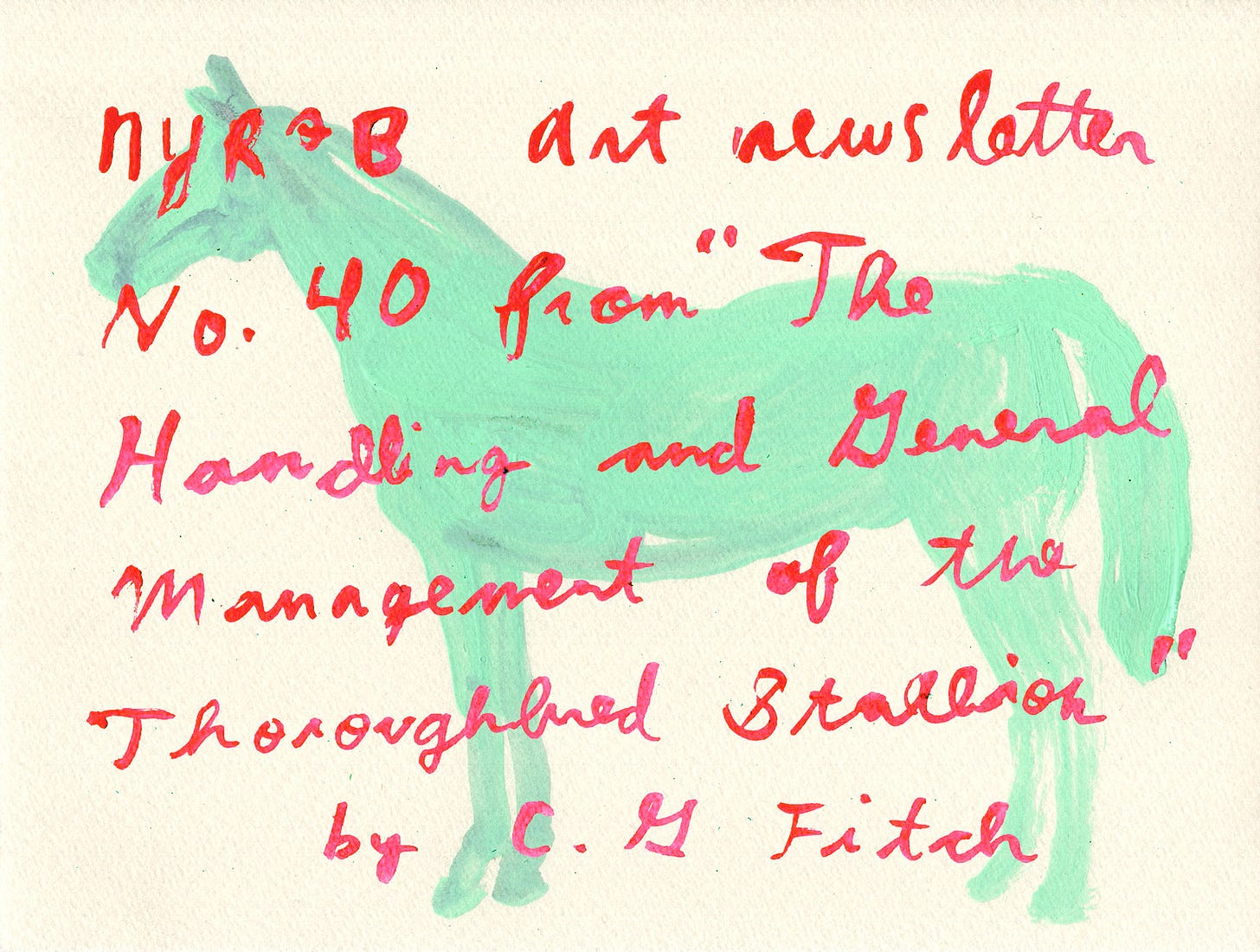 The first art newsletter of 2026, the year of the horse according to the Chinese zodiac, is inspired by a 1947 book I came across in the London Library a few years ago: The Handling and General Management of the Thoroughbred Stallion, by C.G. Fitch, which includes a generous complement of horse photographs. I painted some quick studies based on photos of the thirty-two “stayers” (horses bred for endurance and stamina for longer-distance races), with names like Spearmint, Mahmood, Precipitation, Blenheim, Persimmon, and Bois Roussel.