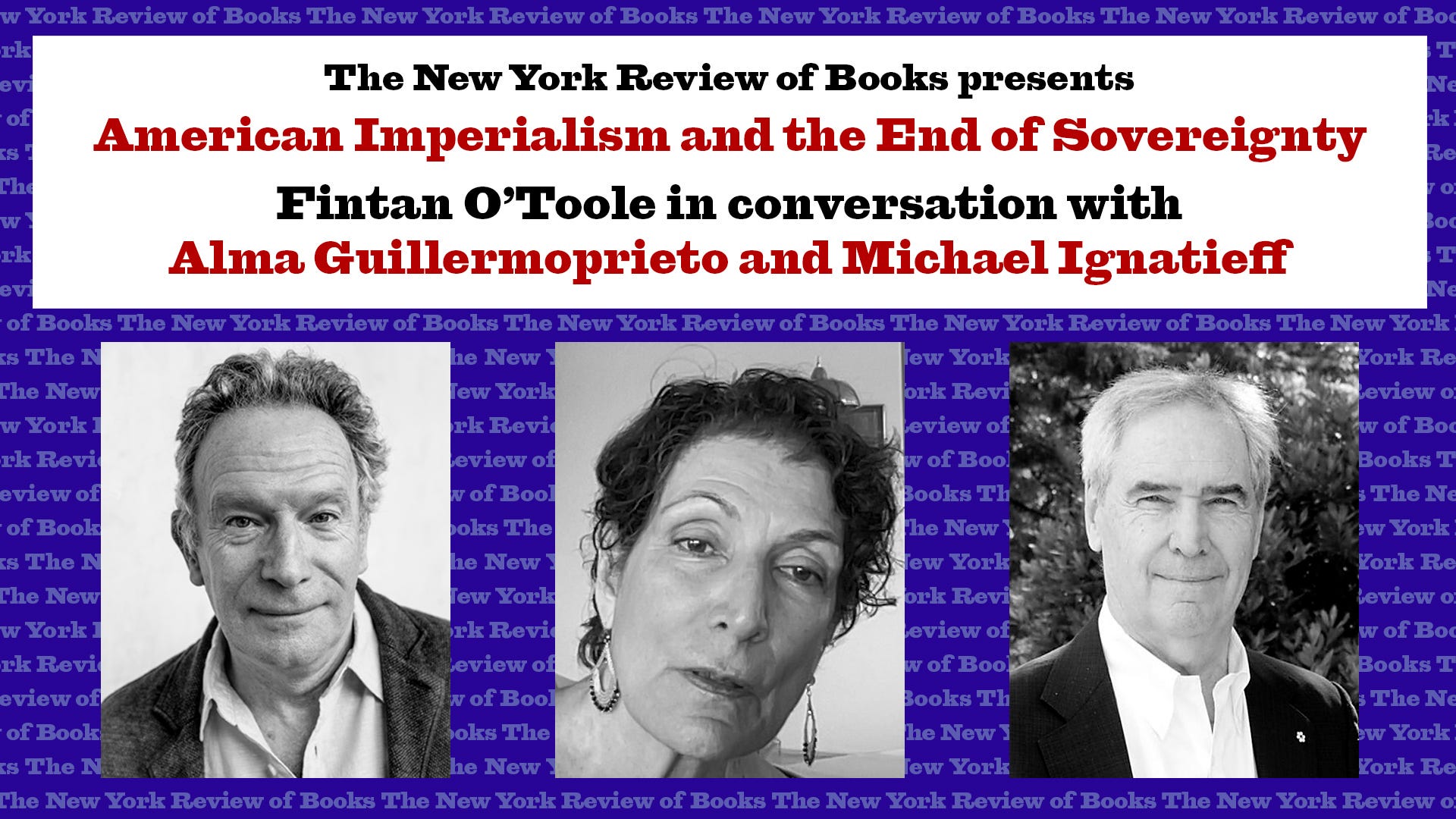 Fintan O’Toole hosts New York Review contributors Alma Guillermoprieto and Michael Ignatieff for a wide-ranging conversation on the Trump administration’s imperial ambitions in Venezuela, Greenland, and beyond.